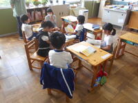 朝の活動は、たてわり班で話を聴き合う「ともだちタイム」でした。