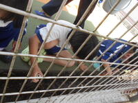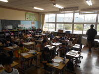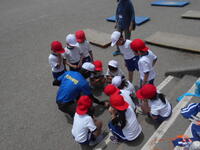 1年体育、鉄棒が終わって、給水タイム、次の運動について聞きます。