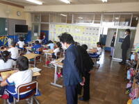 学校運営協議会の委員さんが見ています。このあと会議をします。