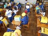 給食のあと帰りの用意をしました。友だちのを参考にしたり、自分で考えたりしながら、ランドセルに荷物を入れていました。