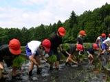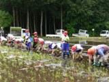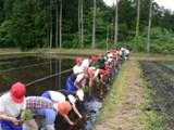 7名の皆様の御協力を得て、5年生が田植えを行いました。