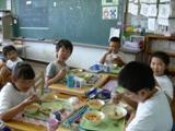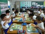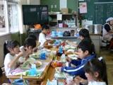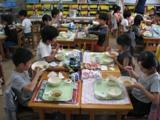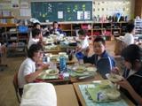 子どもたちはもくもくと給食を食べていました。たまねぎの甘