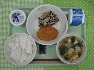 【献立名】 ごはん 牛乳 豚肉コロッケ(ソース)