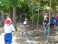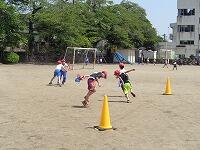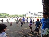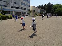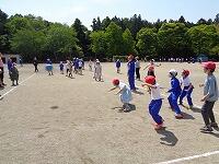 上級生が、リードをして遊びの内容、ルールなどを説明して始まりました。どの班も元気いっぱい、走ったり、ボールを追いかけたりして、時間いっぱい楽しんでいました。