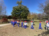 子供たちは、班長さんをリーダーに、自分たちで、フィールドビンゴを実施しながら、秋を探していました。また、木の実や色付いた葉っぱを集めていました。