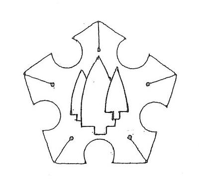 5角形に配置されたべンは、大沢小学校の大の字を表わしている。ペンは文化のシンボルである。5つのべンは、大沢小学校が求める人間像にもつながっている。それは、二宮尊徳先生が説かれた一円融合の和の精神であり、知力・徳力・体力を磨き、情操豊かで、創造力と実践力をもった子どもの育成をねらいとしている。
