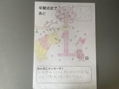 あと1日です。いよいよ明日は卒業式です。最高の卒業式にしましょう。