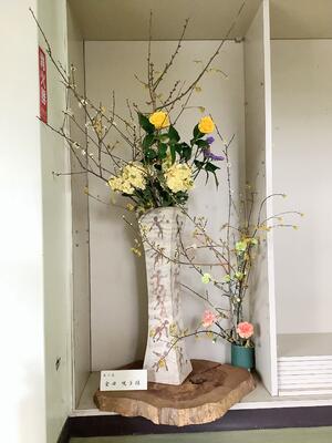 本日、金田咲子先生が、卒業式の花を生けてくださいました。6年生が喜びます。ありがとうございました。