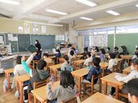 次に、5年生が、発表しました。「学び合い」をがんばったことを発表しました。また、クラスの平均点が上がったこともうれしかった、と発表しました。自分のことだけではなく、クラスのことも考えている発表ですごいと思いました。