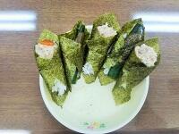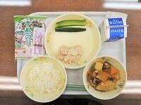 献立:牛乳 手巻きごはん(ツナ・胡瓜・梅びしお) 筑前煮