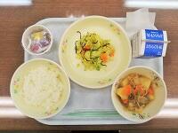 お昼の放送で給食委員が、「肉じゃがは、家庭料理の代表です。栄養バランスがとてもよいです。」と話していました。本日の肉じゃがは、じゃがいも、人参、豚肉、玉ねぎ、しらたき、グリンピースが具でした。じゃがいもに味がよくしみていて、美味しかったです。