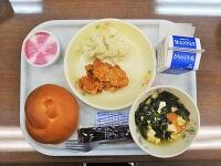 今日の給食は、「1年生リクエストメニュー」でした。「からあげ」は、子供たちが選ぶ「大好きな給食メニュー ベスト10」に入るメニューです。1年生も「からあげ」が大好きなのですね。私個人としては、鶏肉大好きなので、とてもうれしかったです。