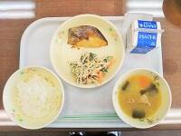 献立:牛乳 ごはん ミナミカマス西京焼き ごぼうサラダ どさんこ汁