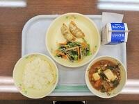 献立:牛乳 ごはん 麻婆豆腐 焼き餃子 小松菜のナムル