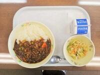 献立:牛乳 ハッシュドビーフ かまぼこサラダ