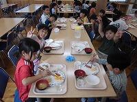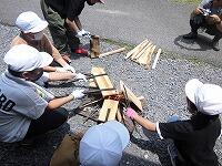 6月13日(木)、今日も朝から快晴です。昨日は、しっかり寝たので全員元気です。朝ご飯もたくさん食べられた児童が多かったようです。今日最初の活動は、火起こし体験です。木をこすって種火を起こすのですが、なかなか上手く付きません。協力と根気強さが試された活動でした。その後の杉板焼きでは、熱い火の中に杉板を入れて、こんがり焼きました。風が吹くたびに煙の方向が変わり、目にしみて全部焼くのが大変でしたが、世界に一つだけの素晴らしいプレートが完成しました。最後の活動は、ネイチャーゲームです。センター内の動植物を見つけるゲームです。「こんなところに黄色い花があった。」と一生懸命見つけていました。楽しかった宿泊学習も終わり、帰りのバスでは、センターの職員にたくさん手を振ってお別れしました。たくさんの思い出と協力する大切さを経験した宿泊学習でした。