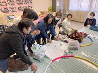 いつになく真剣な表情で、遊びの先生にお手本を見せていただいたり、コツを教えていただいたりして、いろいろな遊びに挑戦しました。コツをつかんで上手にできるようになると、友達に教える姿も見られました。教わった子供たちはもちろん、教えてくださったみなさんも「楽しかったあ!」、「また、呼んでね!」と笑顔で幕を閉じました。