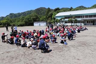 子どもたちは、「お(さない)・か(かけない)・し(ゃべらない)・も(どらない)」の合言葉をしっかりと守って、速やかに避難することができました。
