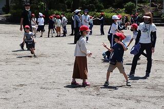 先日編制した「なかよし班」ごとにゲームをし、1年生から6年生まで、皆歓声を上げ、笑顔全開で楽しんでいました。
