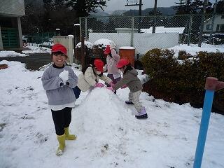 久しぶりのまとまった降雪で2時間遅れの始業となりましたが、子どもたちは大はしゃぎで、昼休みに雪遊びを満喫しました。