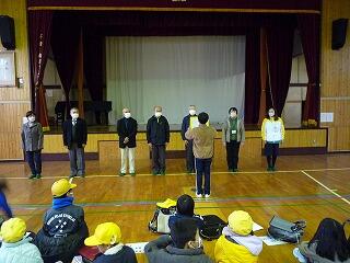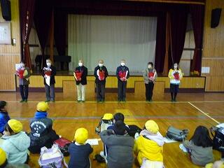 日頃お世話になっている皆様に感謝の気持ちをお伝えするため、毎年この時期に感謝の会を開催しています。本日は、校庭がぬかるんでいたため体育館で実施し、児童代表の言葉に続き、心ばかりのお礼の品として感謝の手紙と鉢花を差し上げました。