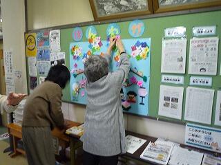 また、この間、読み聞かせ以外に図書整理や職員室前廊下・図書室の壁面制作などを行ってくださるだけでなく、近年では、家庭科のミシン掛けの補助や生活科の「昔の遊び」で講師をお務めいただくなど、本校の子どもたちの健やかな成長のために、多大なるご協力をいただいております。これまでの、そして今年度の活動に改めて感謝を申し上げたいと思います。