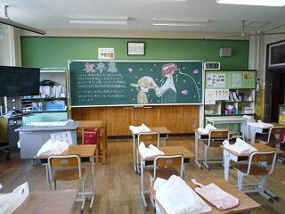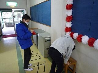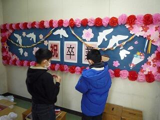 10日後に迫った卒業式に向けて、5年生が清掃や飾りつけの準備をしてくれました。
