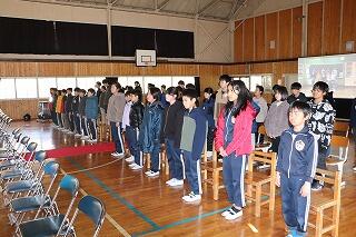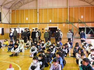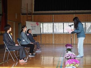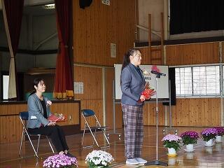 離任式では、転退職する3名の教職員を見送るため、春休み中にもかかわらず、多数の児童が参加してくれました。ご配慮に感謝申し上げます。