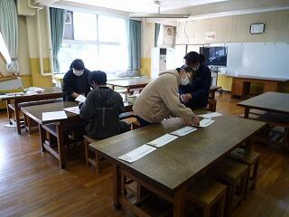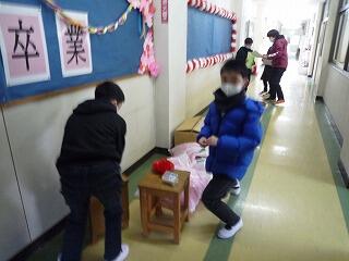 明日の卒業式に向け、5年生が会場や控室などの準備を行いました。