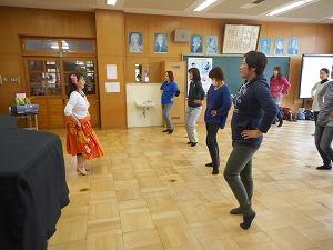 持久走大会後、多くの保護者の皆様に御参加いただき、第2回家庭教育学級が開催されました。フィットネスフラ・インストラクターの弓野博子先生を招聘し、「フィットネスフラ」の体験講座を実施しました。弓野先生の丁寧な御指導の、フラのステップやハンドモーションを使いながら、ハワイアンソングに合わせて有酸素運動を行うことで、心も体もリフレッシュ!終始、和やかな雰囲気の中で、保護者同士の交流を深めることができました。