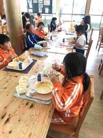 「おかわりたくさんしたよ」と教えてくれたのは2年生です。とても満足そうでした。一年前と比べて、成長を感じました。