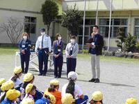 はじめに、本日、児童の指導者として来校してくださった皆さんの紹介です。日光市役所生活安全課の職員お二人、大桑駐在所の巡査長さん、そして毎朝交差点に立って見守ってくださる交通指導員さん、計4名の方々にお世話になりました。