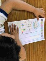 1年生は、自分の好きなものを絵でかいて発表しました。
