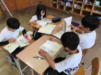 1,2年生が一緒に国語の学習をしました。