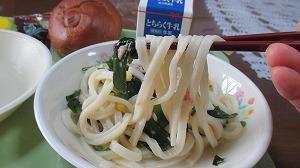 本日の献立「バターロール・牛乳・サラダうどん・スコッチエッグ・日向夏ゼリー」