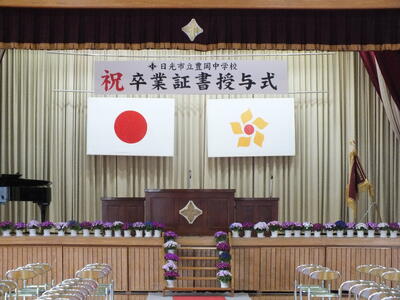 また、午後は、2年生が式場設営、1年生が校舎内外の清掃を、分担しながら会場を整えました。