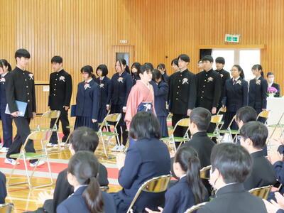 式後の卒業生合唱の場面では、卒業生一同が心を一つにして臨み、3年間の集大成にふさわしい感動的な一幕となりました。卒業生が帰る頃には朝積もっていた雪も溶け、門出を祝福するかのような春らしい日差しも戻ってきました。