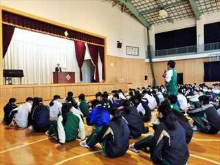 11月28日(火)、栃木サッカークラブ代表取締役相談役の水沼富美男様をお招きし、「これからの社会で求められる力」と題して講演いただきました。講演を通して、自己の在り方、生き方を考え、将来の社会参画の実現に向けて何が必要なのかを考えるよい機会となりました。栃木サッカークラブJ2昇格おめでとうございます。いつも子どもたちに夢と希望をありがとうございます。