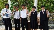 予定よりも早くホテルに到着しました。気温が高い中での活動でしたが、無事終えることができました。生徒たちは少し疲れた表情をしています。
