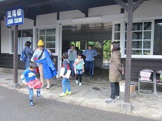 渡良瀬渓谷鉄道のイルミネーション点灯式が足尾駅で行われました。今日から毎晩、渡良瀬渓谷鉄道の各駅で鮮やかに彩られたイルミネーションが見られます。ぜひ、足を運んでいただきご覧ください。毎年、初日にイルミネーション点灯式が各駅を順番にまわって行われています。今年度は、足尾駅で点灯式を行うことになり、足尾中学生や足尾小学校児童が大活躍しました。また、会場には足尾小学校児童の描いた渡良瀬渓谷鉄道のイラストが展示されました。式典の総合司会を足尾中学生2名が行い、まずは今年20周年を迎えたチーム銅の太鼓演奏で始まりました。群馬県みどり市のよさこいグループのダンスの後、日光市長、みどり市長のあいさつがあり、イルミネーションが点灯されました。寺子屋の小学生を中心に足尾小学校の児童が、足尾駅から間藤駅までの往復を電車に乗り、車内で渡良瀬渓谷鉄道の説明や足尾名物「あんこ玉」・日光仮面のストラップ等を乗車してくださった方々に配りました。乗車してきたお客様方にたいへん喜んでいただきました。小中学生も足尾をより多くの方に少しでも知ってもらうために頑張っています。