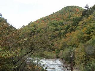 足尾トンネル手前の渡良瀬川沿いの紅葉