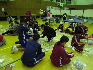 呑龍寺を借りて行っている足尾市民子ども大学寺子屋の修了式と感謝の会を行いました。最初は、児童の希望でカラオケ大会を行いました。続いて足尾小学校の家庭科室をお借りして、感謝の会の食事を作りました。下級生は、ケーキを作りました。6年生は、餃子の皮を使ったミニピザと卵焼きを作ったり、手巻き寿司の準備をしたりと5時からの感謝の会に間に合うように頑張りました。感謝の会では、日頃お世話になっている実行委員の方々をお招きして楽しい会食会を行いました。会食後に塾長の中山さんより修了証書と思い出の写真が入った額が児童に授与されました。