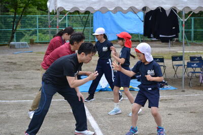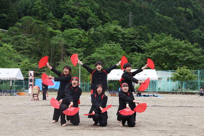 小中学生分かれての運動会での応援や演舞の練習に取り組んでいます。5月末の運動会に向けて、応援や演舞の内容を子ども達が話合いながら練習しています。運動会で元気な応援や息のそろった演舞を披露できるよう、がんばっています。