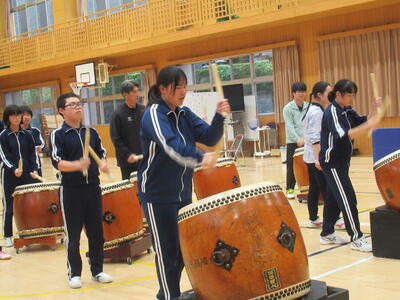 11月26日(水)に日頃、学校支援ボランティアや学校支援でご協力いただいている地域の皆様方に感謝の気持ちをお伝えする「感謝の会」を実施しました。児童生徒会の企画により、太鼓や合唱で感謝の気持ちをお伝えしようと、準備をしてきました。