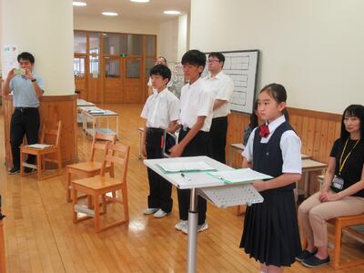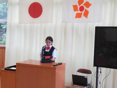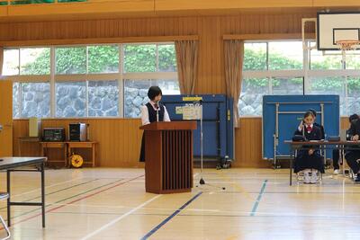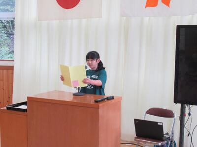 7月16日(火)に少年の主張の校内審査会がありました。生徒が日頃感じていること、考えていることを文章にして発表しました。審査会では、各学年の代表等の生徒5名が、高学年児童と生徒、教職員の前で発表する形式で行います。差別や偏見の解消や環境保全、自己の在り方や生き方、多様性の尊重など、今の時代に生きる子ども達が中学生の視点で発表しました。舞台上での発表や審査会の場ということで、緊張もあったと思いますが、発表した全員が自分の考えを堂々と主張することができ、大変立派なものでした。この審査会で選出される1名が、9月に行われる日光市の少年の主張発表大会の学校代表となります。