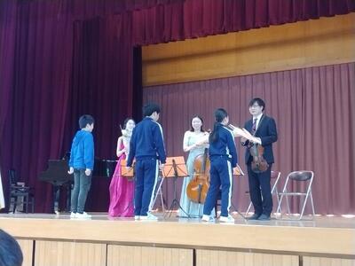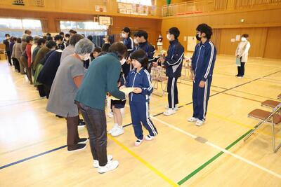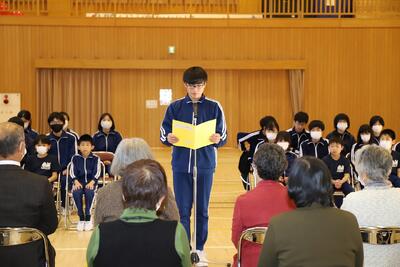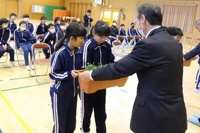 12月25日(月) 3校時に2学期終業式を行いました。校長講話、児童生徒代表発表が行われました。続いて、表彰伝達、児童生徒会役員任命式が行われました。2023年を締めくくるのにふさわしい立派な態度で、全員が式に臨むことができました。