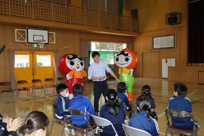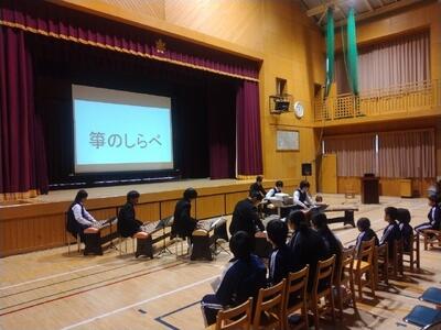 2月1日(木) 昼休みの時間を使って、広報委員会の企画で節分集会が行われました。この集会には、隣にあるこども園からかわいいゲストも参加してくれました。委員長の開会宣言の後、節分についての説明、節分に関するクイズ、豆に見立てた小さい木片を箸でつまんでリレーするゲームなどを行い,楽しいひとときを過ごしました。立春を迎え,春はもうすぐそこまで来ています。