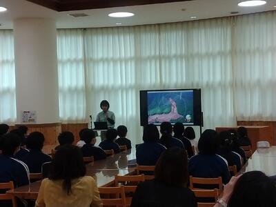 11月30日(木) 5校時に、家庭教育学級と5~9年生の学級活動の時間に、管理栄養士の臼井先生をお招きして「成長と運動に必要な栄養食事術」と題した講演会を行いました。講話の中で先生は、「バランスよく食べることが大切」「朝ご飯はその日のエネルギーをとるだけでなく、夜の睡眠にもかかわっている」等のお話をしてくださいました。食事はお腹を満たすだけでなく、体作りのために考えてとることが大切なのだと思いました。