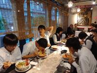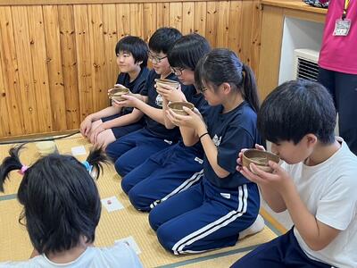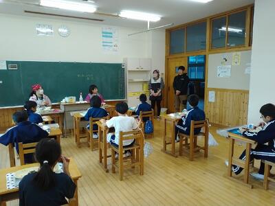 6年生は自分たちで作ったエプロンを着て、5年生は自分で作ったランチマットを敷いて、インスタントラーメンを作り、それぞれをトッピングして、試食しました。自分たちで調理した料理は特に美味しく感じます。今回身に付けたことを生かして、家庭でも挑戦できるといいですね。