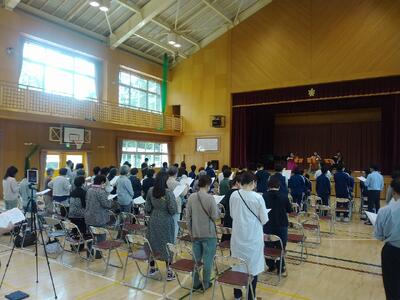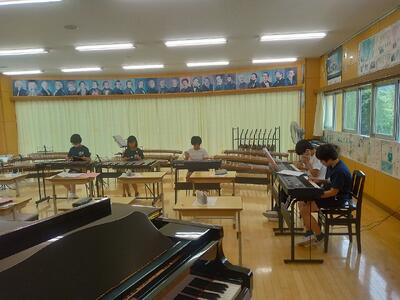 中学生による毎週水曜日の合唱タイムも1学期最後になりました。毎週の練習を通して、各パートの音程やリズムが整い、日々ハーモニーが美しくなってきました。教職員も合唱に参加しながら練習を重ねてきました。2学期もさらに美しい合唱に向けて練習に取り組んでいきます。